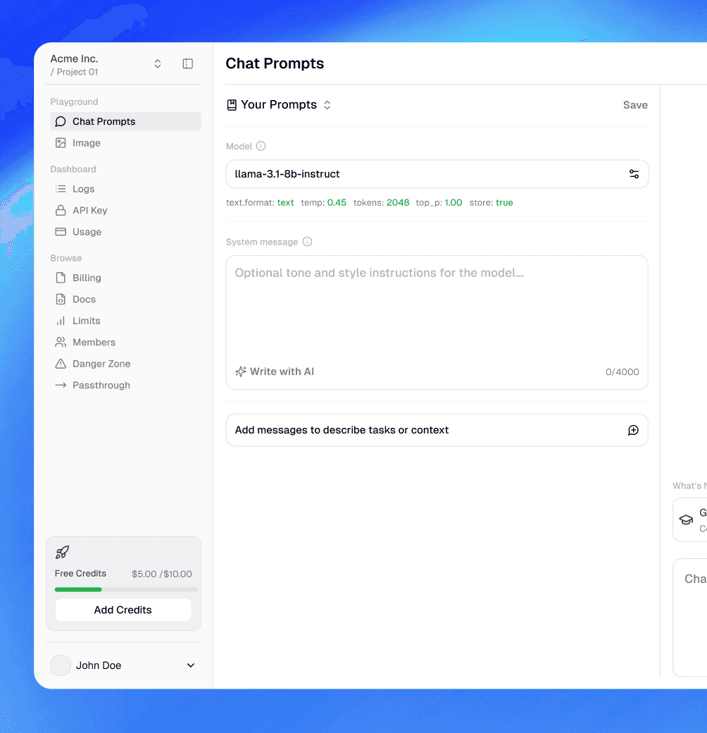 Designed a clean control panel for managing models, prompts, and usage with clarity, speed, and zero confusion.