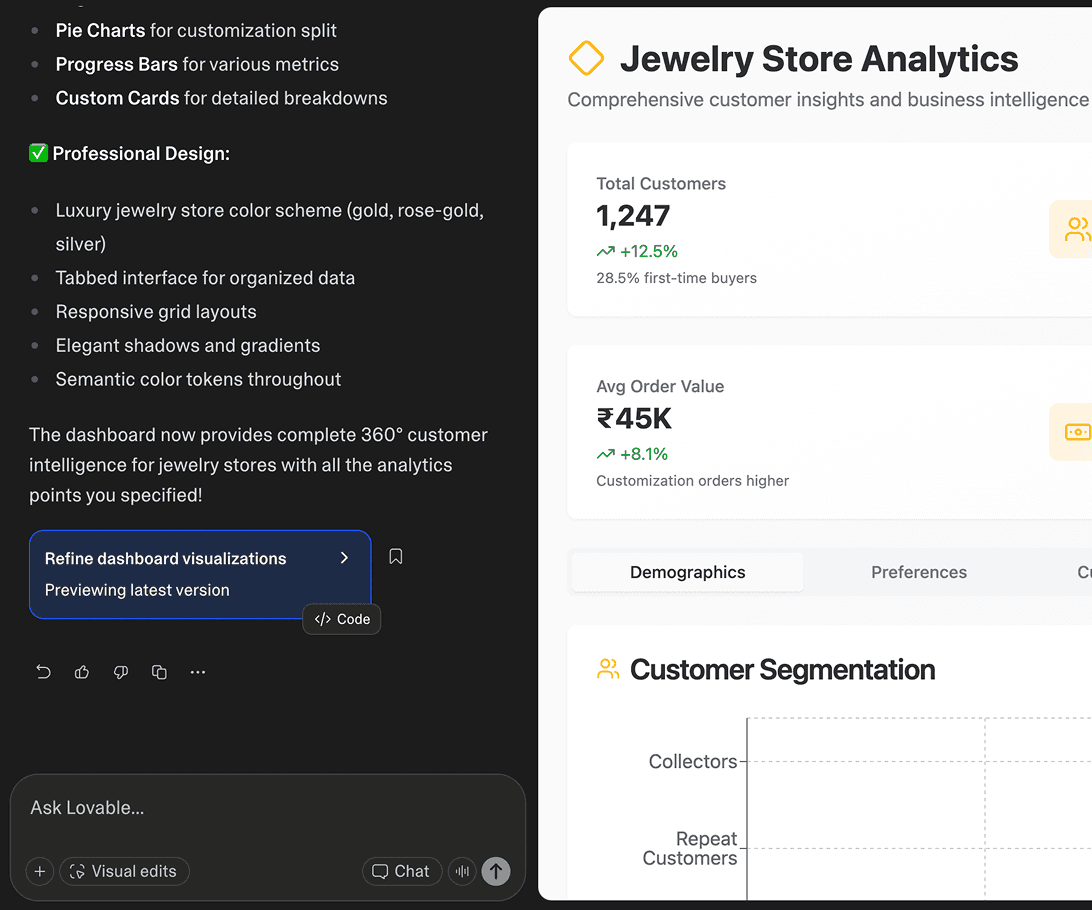 We move into high-fidelity product UI sooner, where structure, behavior, and copy can be evaluated together.