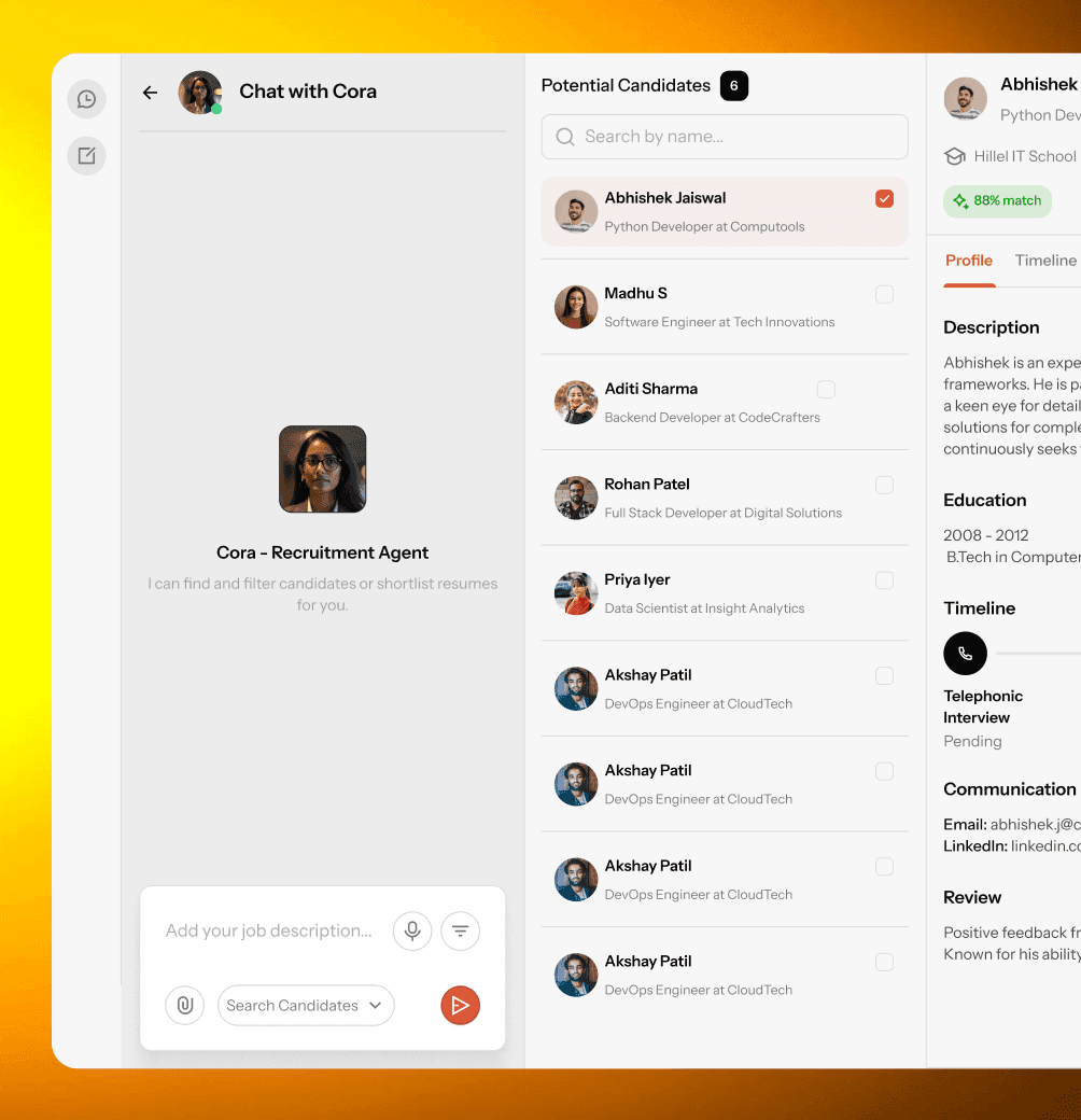 Built an AI-assisted recruiting flow that cuts manual work and helps teams shortlist the right talent fast.